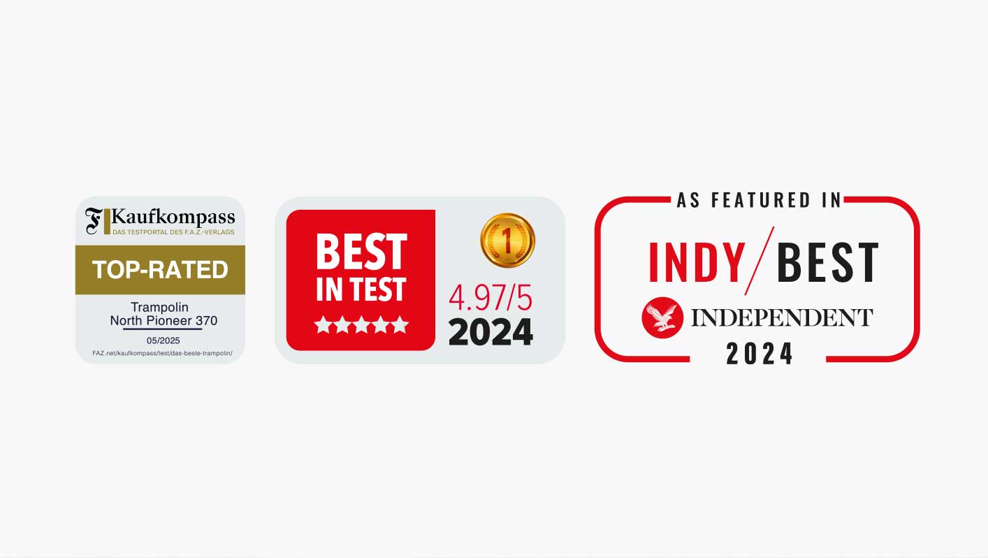 North trampolines have been recognised as the best trampolines in European independent tests between 2015 and 2024. In 2023, The Independent, one of the UK's leading newspapers, voted North Trampolines the best high-performance trampoline and best rectangular trampoline. They say: